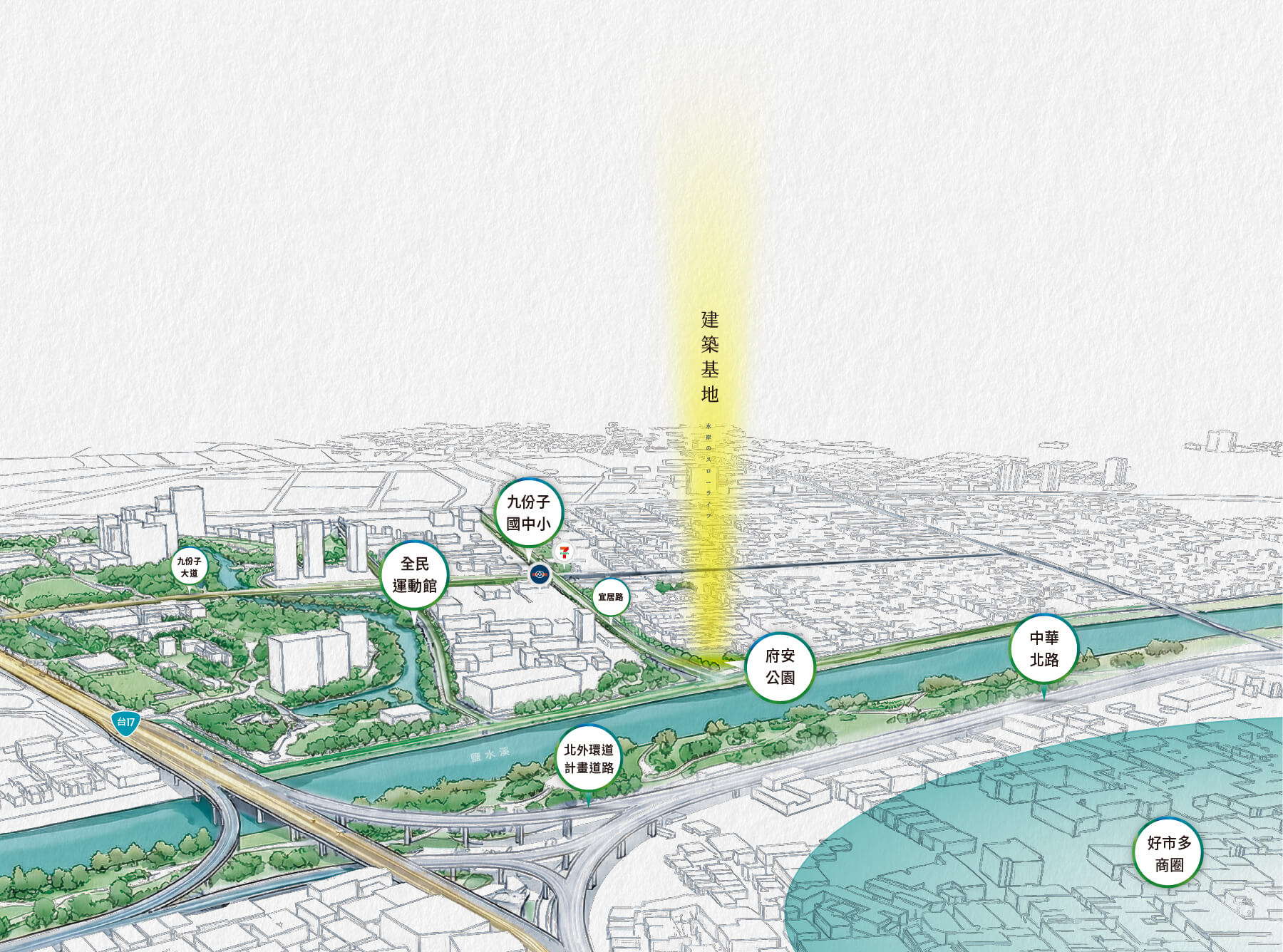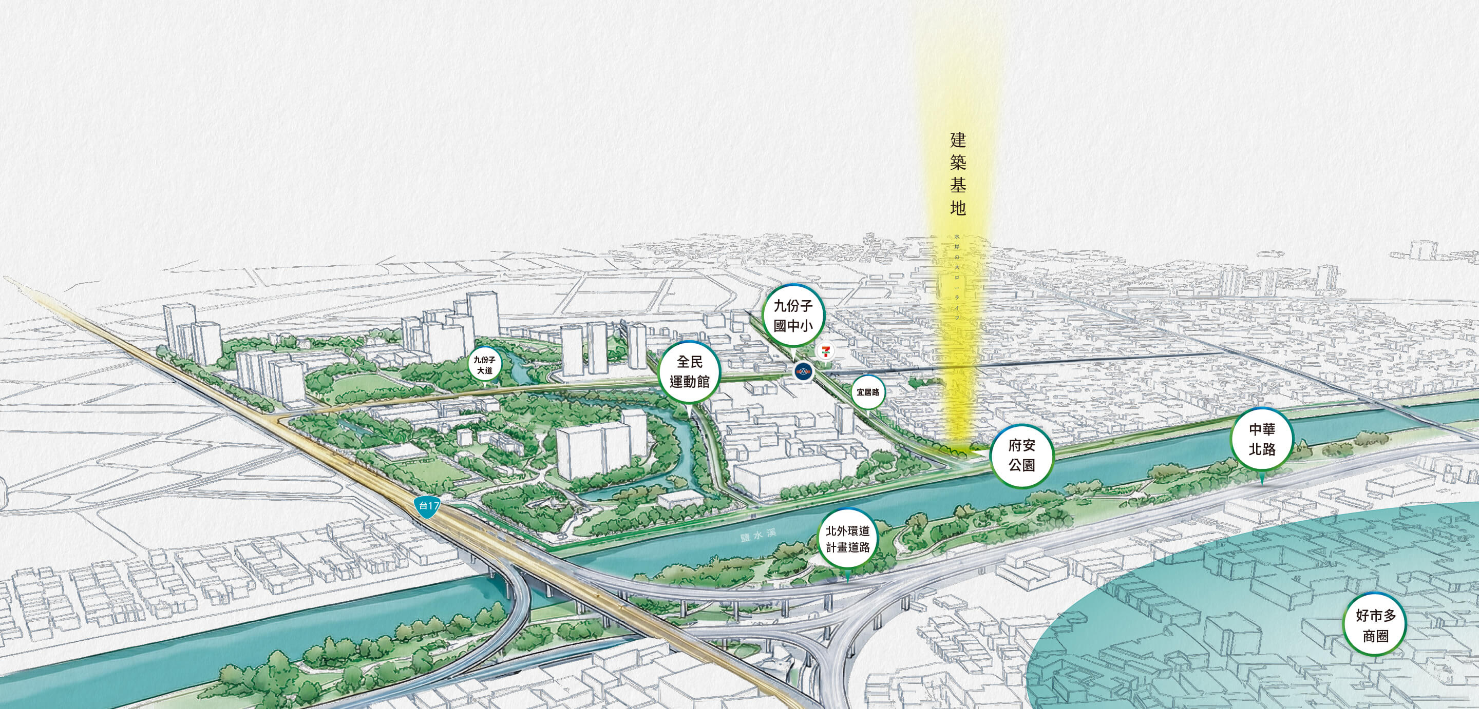 一座橋連接 安南x北區生活圈,和緯、文賢、西門、海佃環繞,便利隨手可得。