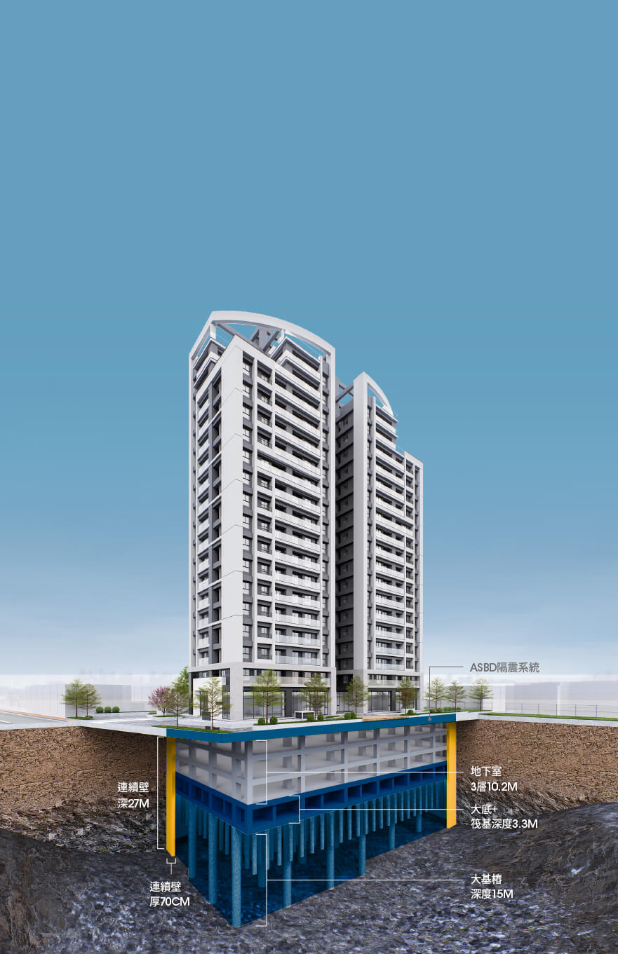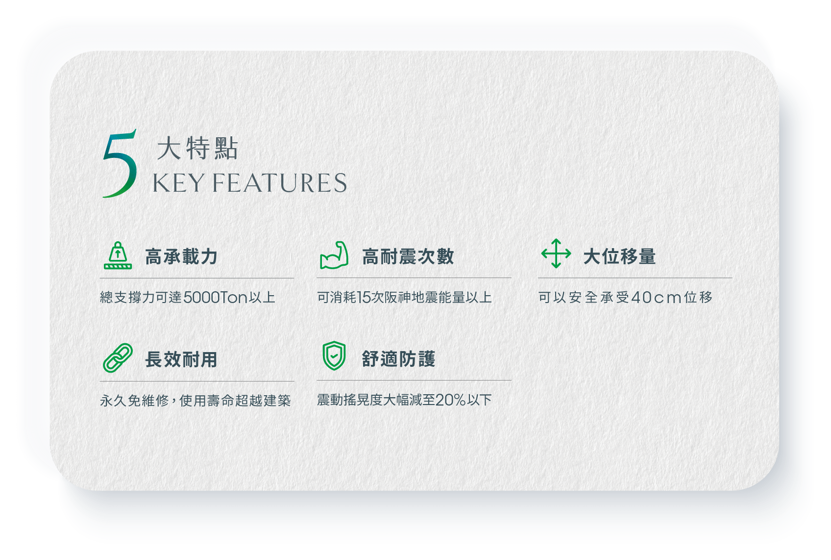 以核電廠等級的耐震係數守護建築穩定,有效阻隔地震量能,讓居住更安穩舒適。
